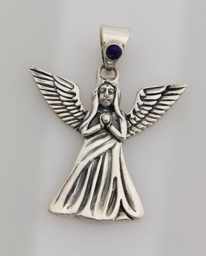 Silver Angel and lapis Pendant
