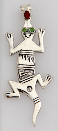 Silver Lizard pendant with Gaspeit and Coral